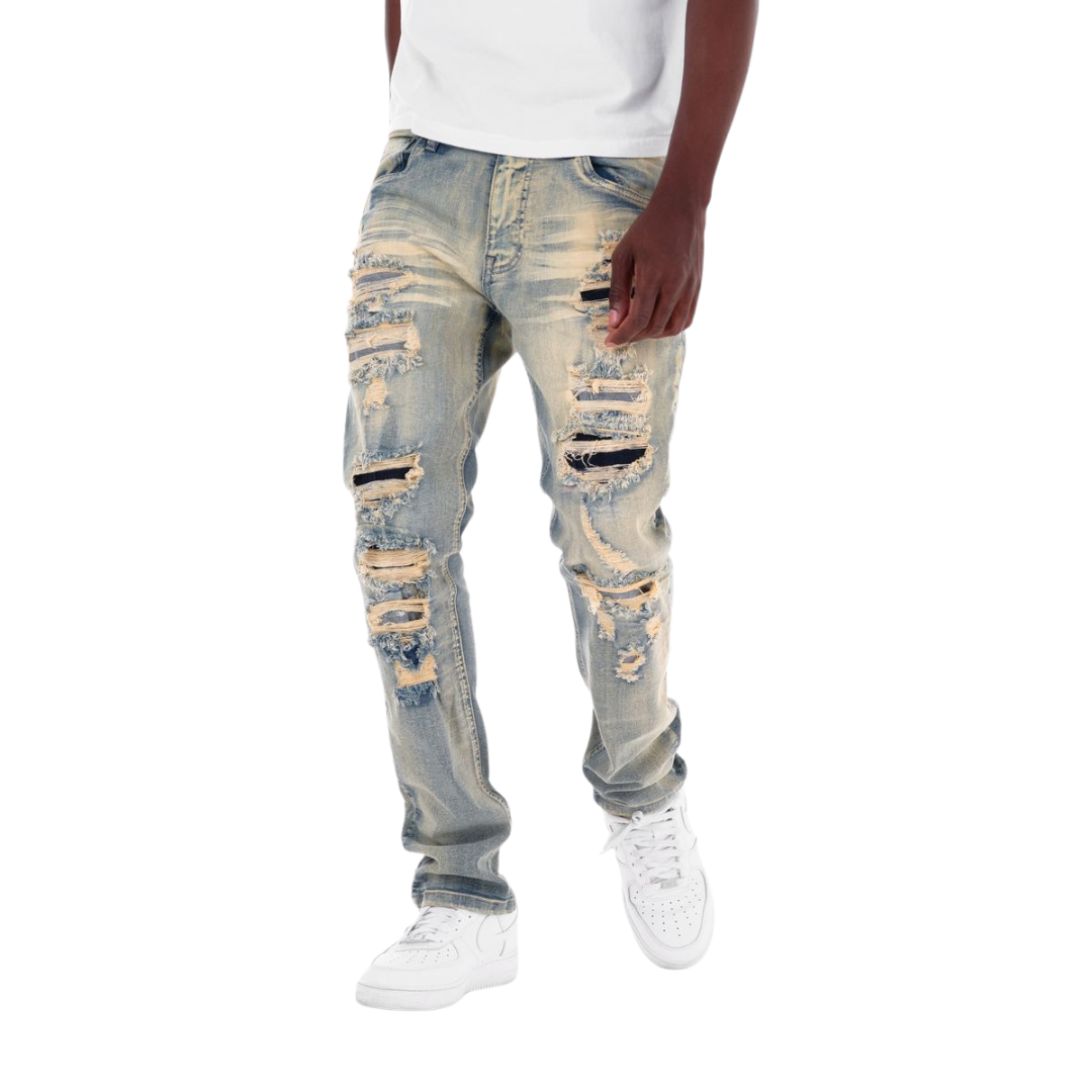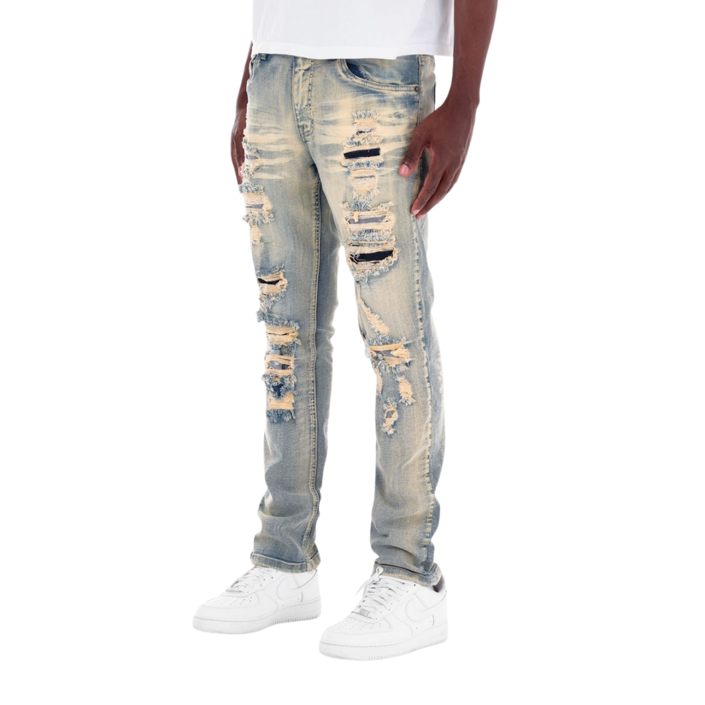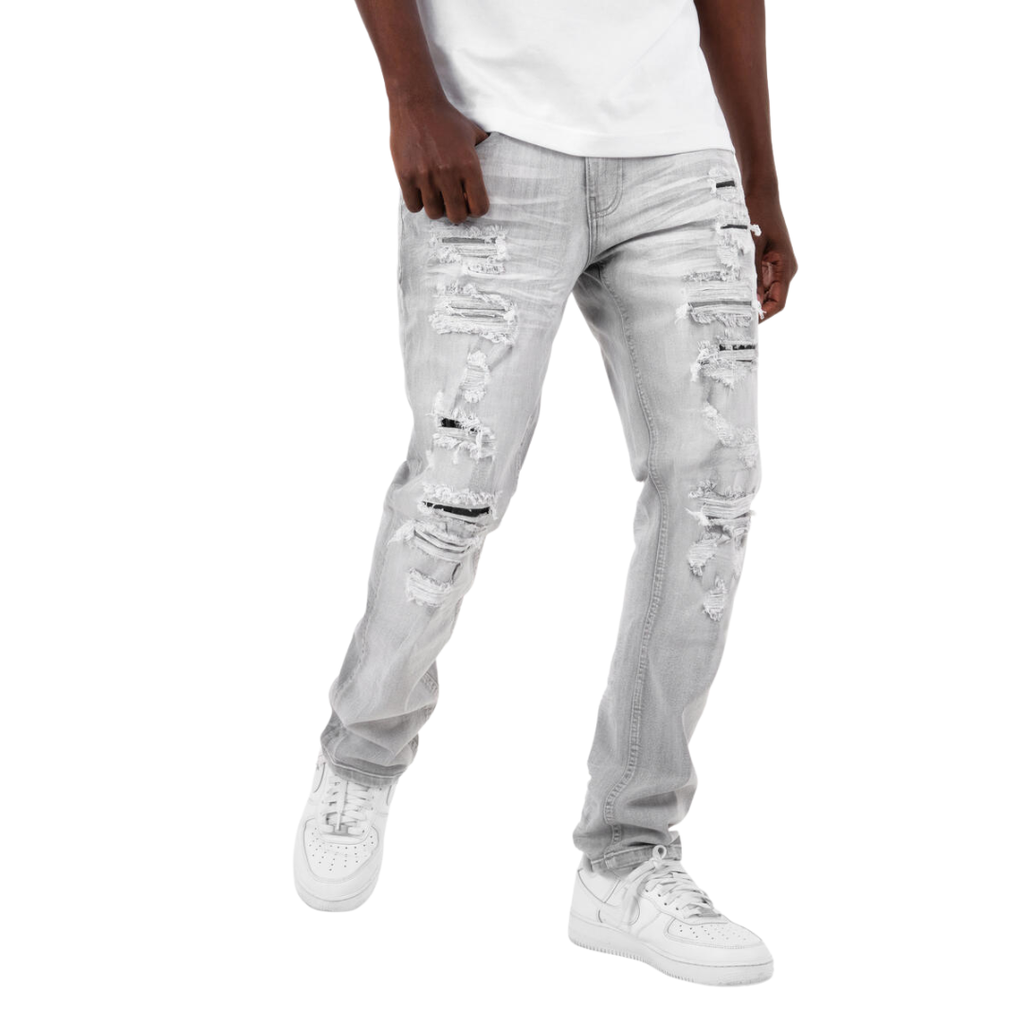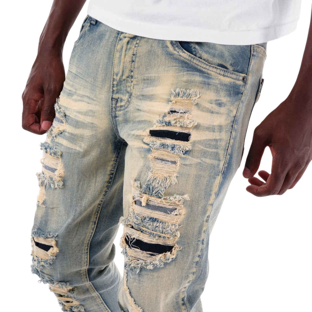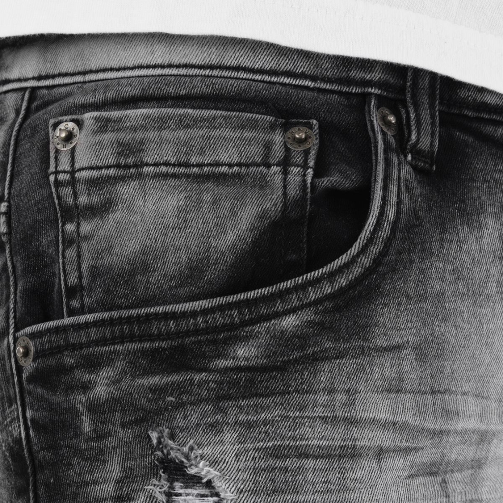 Copper Rivet Ripped Jeans offer a blend of durability and modern style, featuring reinforced copper rivets for enhanced strength at stress points. The intentional ripped detailing adds a fashionable, edgy look while maintaining comfort and fit. Designed for those who appreciate craftsmanship and contemporary design, these jeans provide both lasting wear and a statement aesthetic.